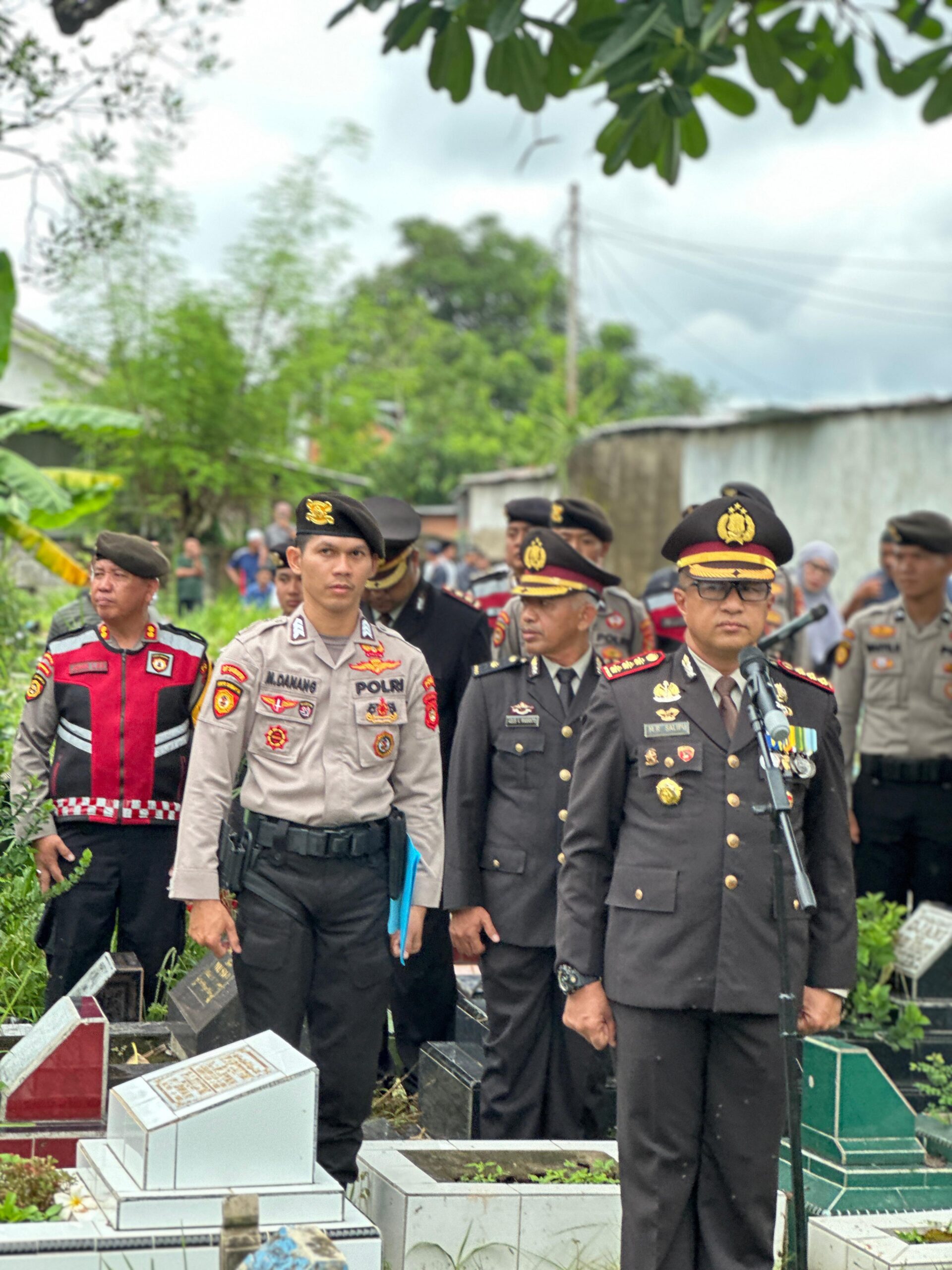 Palembang, insert88.com – Direktur Samapta Polda Sumsel Kombes Pol Mohammad Rendra Salipu,SIK,MSi menjadi Inspektur Upacara dalam acara pemakaman Almarhum Bripka Yana Hadiyana Anggota Subnit harvet Unit Polsatwa Ditsamapta Polda Sumsel di Taman Pemakaman Umum kamboja Kota Palembang Senin siang (27/1/2025).