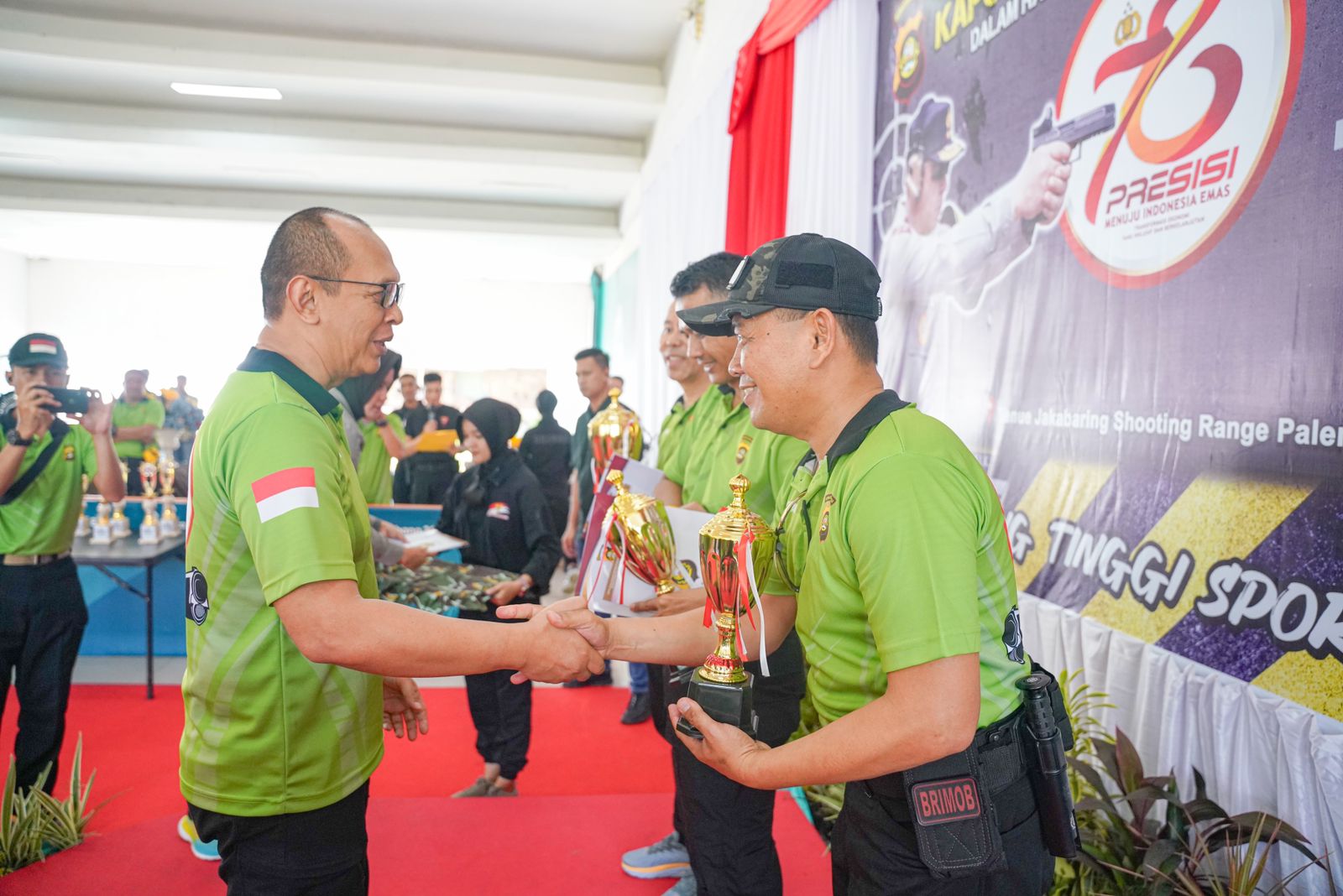 Di kelas beregu, tim Satbrimob berhasil meraih juara pertama dengan nilai 195, diikuti oleh tim Dit Reskrimum dengan nilai 183, dan tim Polres Muara Enim dengan nilai 182 sebagai juara ketiga.