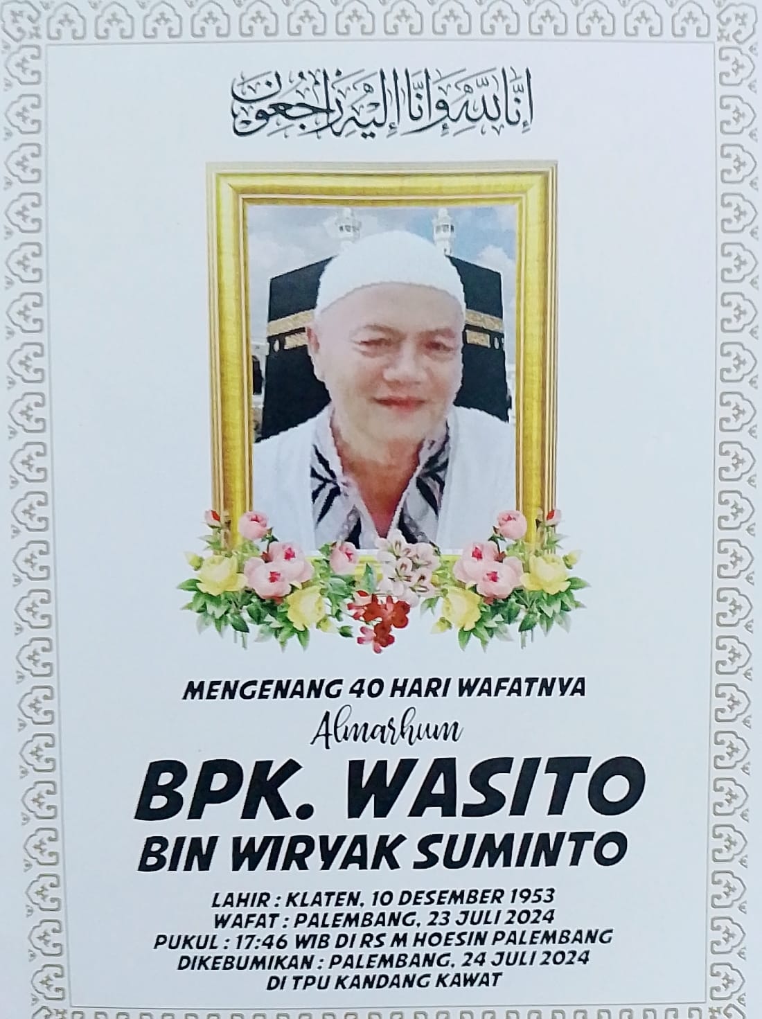 Sosok Wasito akan selalu dikenang sebagai pribadi yang penuh kasih dan dedikasi, dan jasa-jasanya akan terus hidup dalam kenangan dan doa setiap orang yang pernah merasakannya. Ini adalah pengingat bagi kita semua bahwa kebaikan dan dedikasi yang tulus akan selalu dikenang dan dihargai, bahkan setelah seseorang berpulang.