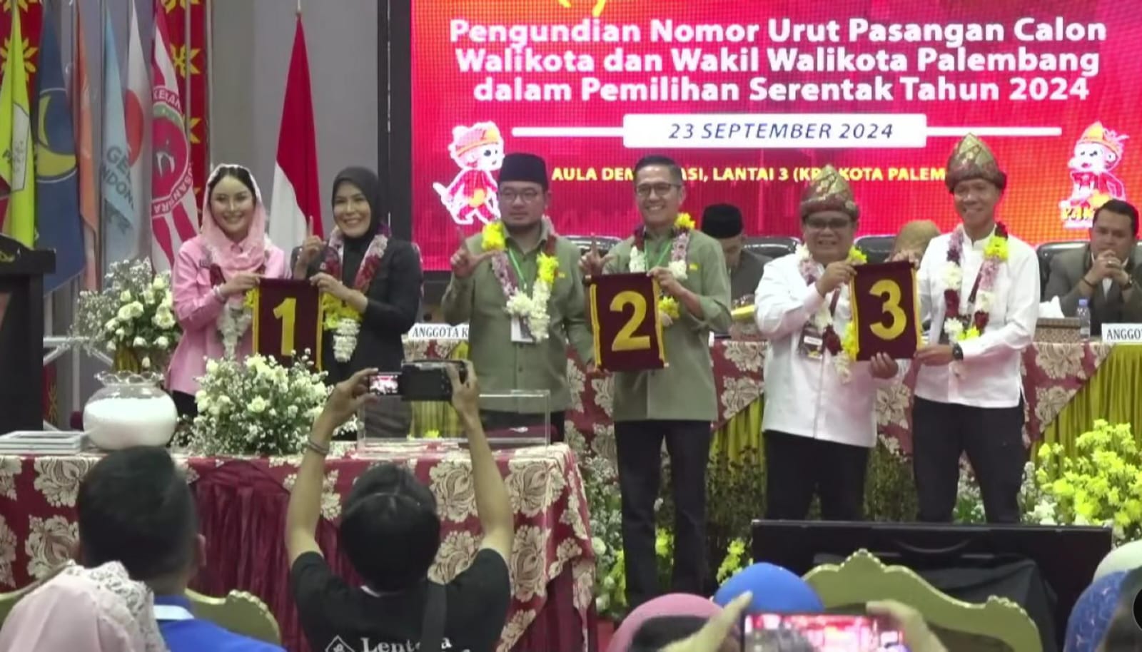 Palembang – Insert88.com – Komisi Pemilihan Umum (KPU) Kota Palembang sukses menyelenggarakan pengundian nomor urut pasangan calon (paslon) Wali Kota dan Wakil Wali Kota Palembang untuk Pilkada 2024. Acara berlangsung di Aula Demokrasi, Lantai 3 Kantor KPU Kota Palembang, dengan disaksikan oleh berbagai pihak, termasuk kandidat dan tim sukses. Senin ( 23/9/24)