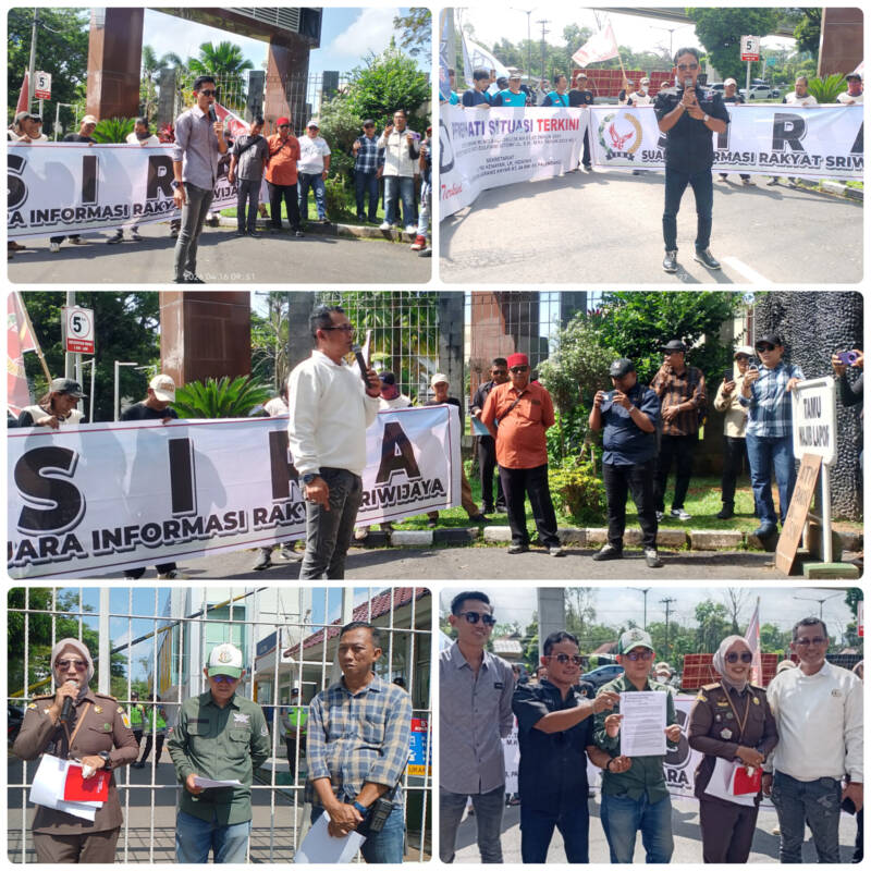 Insert88.com, Palembang – Massa yang tergabung dalam Lembaga Suara Masyarakat (LSM) Suara Informasi Rakyat Sriwijaya (SIRA) bersama Pemerhati Situasi Terkini (PST) mendesak penyidik segera menetapkan tersangka baru dalam kasus dugaan gratifikasi proyek irigasi di Kabupaten Muara Enim yang menjerat anggota DPRD Muara Enim berinisial KT bersama anaknya RA. Aksi unjuk rasa kembali digelar di depan Kantor Kejaksaan Tinggi (Kejati) Sumatra Selatan (Sumsel), Kamis (16/4/2026).