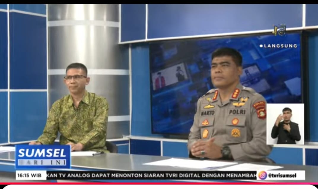 Palembang – insert88.com – Kabid Humas Polda Sumsel Kombes Pol Sunarto berkesempatan menjadi pembawa berita di TVRI Sumsel. Kegiatan ini dilakukan di studio TVRI Sumsel, Palembang, Sumatera Selatan, Selasa (28/1/2025) sore.